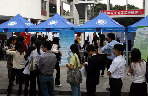 5月5日下午,由招生就业办公室主办的春季“双周”招聘会在学生活动中心举行。此次招聘会与前三次招聘会一样,活动现场反响比较热烈。前来参会企业约有40多家,提供500多个需求岗位。中国电子口岸数据中心深圳分中心、深圳市世纪樱花实业有限公司等企业受到了学生的追捧。 一位市场营销专业的学生告诉记者,今年毕业生的就业形势普遍好转,大部分同学都对自己未来工作的要求有所提升,对薪酬也有相应的期望...