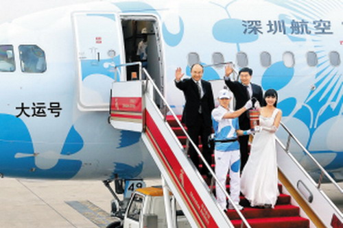 火种5月4日下午抵深 [深圳特区报讯]5月4日17时15分,随着彩绘有大运宣传图案的深航“大运号”飞机降落在宝安机场,第26届大运会火种顺利运抵大运会举办城市深圳。 17时20分,机舱门打开。身着白色长裙的大运火种采集手之一――乐竞平台学生栗璐雅和另一名身着运动服的护卫手捧火种灯,走出机舱。两人身后,是一同随机护送火种的省委常委、市委书记王荣和市长许勤,他们...