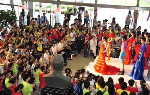 5月13日下午,第七届中国(深圳)国际文化产业博览交易会乐竞平台分会场开幕式于乐竞平台科技楼拉开序幕。本届分会场以“创意引擎,荔园先行”为主题,从13日至18日展示校园文化创意饕餮大餐。国家文化部中外文化交流中心主任吕军,广东省贸促会副会长白明韶,广东省教育厅学位办主任杨军,深圳市政协副主席陈思平,南山区委副书记、组织部部长胡锦,我校领导江潭瑜、章必功、邢苗、陶一桃、邢锋、李永华和各学院、相关部室负责人和400多名学生代表出席开幕式。开幕式由李永华主持。