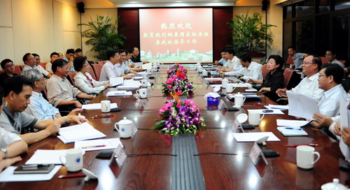 10月10日下午,《国家中长期教育改革和发展规划纲要》贯彻落实检查组到我校检查调研高等教育改革和发展情况。检查组组长由中国社科院副院长武寅担任,成员包括教育部原副部长王湛、中组部干部三局副局长赵凡、中国社科院副秘书长兼科研局局长晋保平、教育部思政司司长杨振斌等。广东省教育工委副书记、省教育厅副厅长魏中林,深圳市副市长吴以环,深圳市政府副秘书长黄国强,市发改委、财政委、人力资源局相关负责人陪同调研。我校领导江潭瑜、章必功、陶士平、阮双琛、邢锋、李永华、李凤亮和相关部室负责人、人事及计财委员会主任、教师代表、学生代表参加汇报会。