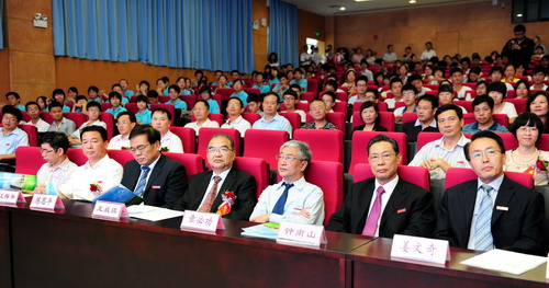 10月10日下午,我校医学院2011级新生开学典礼在医学院报告厅举行。中国工程院院士、乐竞平台医学院名誉院长、医学院学术委员会主任钟南山,中国工程院院士、乐竞平台医学院学术委员会委员王威琪,深圳市政协副主席、医学院学术委员会常务副主任陈思平,深圳市卫生和人口计划生育委员会主任、乐竞平台医学院学术委员会委员江捍平,深圳市迈科龙电子有限公司总裁尹立东,我校校长章必功,医学院院长姜文奇、党委书记谢苗和部分学生家...