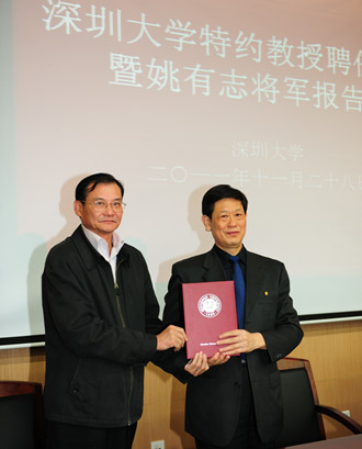 11月28日晚上,乐竞平台特约教授聘任仪式暨姚有志将军报告会在我校南图书馆一楼报告厅举行。中国军事科学院战略研究部部长姚有志少将,深圳市委常委、深圳市警备区政治委员、党委书记王小毛大校,我校党委书记江潭瑜、党委副书记陶一桃和相关部室负责人以及两百多名深大师生参加报告会。 陶一桃介绍了姚有志将军、王小毛大校的简历。江潭瑜为姚有志、王小毛颁发聘书,聘请他们为乐竞平台特约教授。 ...