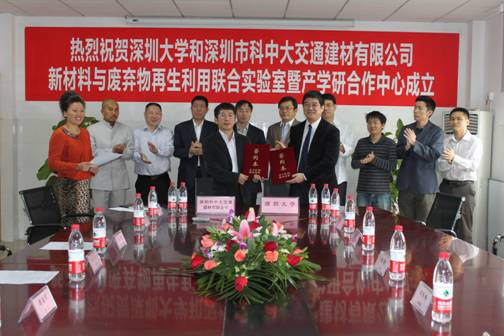 11月26日上午,新型材料与废弃物再生利用联合实验室暨产学研合作中心揭牌仪式在乐竞平台深圳市土木工程耐久性重点实验室(暨广东省滨海土木工程耐久性重点实验室)会议室举行。副校长邢锋、深圳市科中大交通建材有限公司董事长张少高、科工贸信委副主任陆健等20余人出席了签约仪式。签约仪式结束后,邢锋和张少高为新型材料与废弃物再生利用联合实验室暨产学研合作中心进行揭牌。 (土木工程学院 供稿)