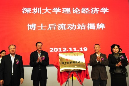 经国家人力资源和社会保障部批准,我校新获设立“理论经济学”和“信息与通信工程”两个一级学科博士后流动站。11月19日上午,我校在南区医学院学术报告厅举行新设博士后流动站揭牌仪式。深圳市人力资源和社会保障局局长王敏,广东省人力资源和社会保障厅专业技术处处长刘绍辉,我校党委书记江潭瑜,党委副书记陶一桃,副校长阮双琛,科学技术部、社会科学部相关负责人,相关学院博士生导师,全校各单位主管科研院长,科研秘书,在...
