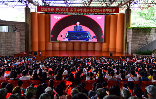 9月3日上午10时,我校在演会中心现场直播了中国人民抗日战争暨世界反法西斯战争胜利70周年阅兵仪式。我校副校长李凤亮及两千余名师生齐聚一堂,观看了本次阅兵仪式。 上午9时,演会中心外已有众多学生排队,秩序井然地凭票入场。9点30分,全场座无虚席,部分学生只能站在后排观看。当李克强总理宣布起立奏国歌时,全体师生起立,肃穆地凝视着大屏幕中缓缓上升...