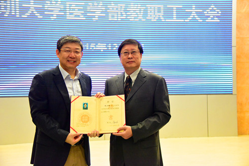 12月1日,北大教授朱卫国受聘为我校医学部主任、医学院院长的聘任仪式在我校医学院学术报告厅举行。我校校长李清泉、党委副书记张基宏及医学部全体教职工出席聘任仪式。聘任仪式由医学院党委书记、医学部副主任谢苗主持。 张基宏宣读任职文件及朱卫国教授的个人情况。 李清泉为朱卫国教授颁发聘书。他表示,十分感谢朱卫国教授能够接受深大的邀请,来到医学院。以朱...
