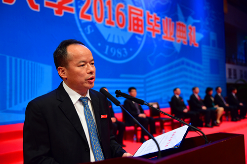 6月19日上午,我校2016届优秀毕业生表彰大会在元平体育馆举行。校领导江潭瑜、李清泉、张基宏、陶一桃、阮双琛、李凤亮、黎军、徐晨,各学院、各机关部门负责人、教师代表、2016届优秀毕业生以及部分家长前来参加了表彰大会。大会由副校长黎军主持。