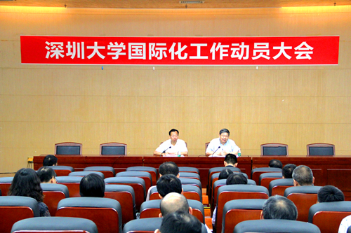6月17日下午,我校在图书馆南馆报告厅召开全校国际化工作动员大会。校长李清泉,副校长李凤亮,以及各学院领导、机关各部室的正职领导参加了大会。 国际交流与合作部副主任彭小刚为大家解读了相关文件。《国家中长期教育改革和发展规划纲要(2010—2020年)》明析了我国发展的国际化大的趋势和背景,同时提到国际化是高水平大学建设的一项重要考评指标。我校国际交流与合作部依据这个文件,以“立足深圳,面向国际”为出发点,从...