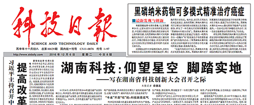 科技日报头版头条报道光电协同创新中心张晗教授黑磷最新研究进展