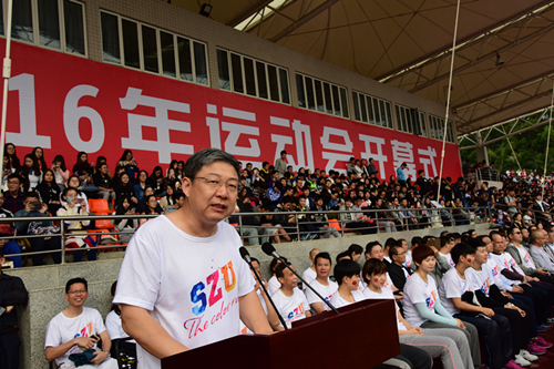 12月6日上午,我校元平体育场内一派欢声笑语,洋溢着青春活力的气息。我校2016年运动会在此举行开幕式,全体在家校领导,各学院、教研教辅单位、机关各部室负责人和全校各学院师生参加开幕式。 在庄严的国歌声中,全场师生注视着冉冉升起的国旗,开幕式由此拉开帷幕。 校长李清泉致开幕辞。他说,当前深大正在建设高水平大学,体育是校园文化的重要组成部分,也是培养全面发展高素质人才的重要内容。近年来学校更加重视体育...