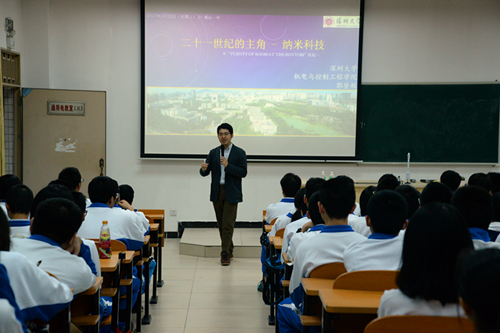 特邀两位80后创业校友加入教学团队 3月22日,我校机电与控制工程学院郭登极老师受邀走进佛山一中,举办讲座——《二十一世纪的主角-纳米科技》。讲座聚焦科技前沿,尽展纳米世界的神奇与魅力,吸引了全场师生的关注,为我校第6期“名师进中学”活动拉开精彩序幕。 我校“名师进中学”活动立足乐竞平台优越的师资,从中学的实际需求出发,为中学举办专题讲座,以拓宽学生视野,激发学生的主动探索精神和自我发展意识,同时...