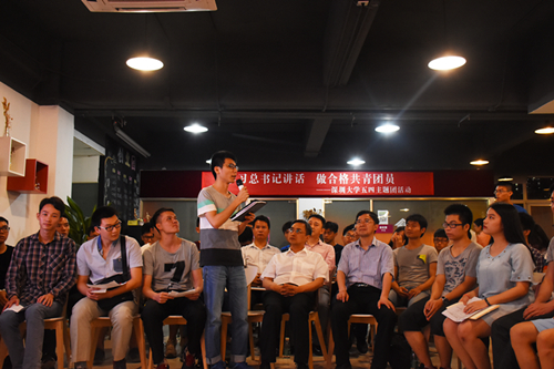 为了增强团员先进性和光荣感,实现中国梦凝聚青春力量,积极贯彻落实团中央的指示精神,5月7日晚,我校信息工程学院2014级电子信息工程二班同学在校团委组织下,在创业学院一楼咖啡厅开展了“学习习近平总书记讲话 做合格共青团员”主题团日活动。副校长王晖,校团委、信息工程学院领导参加了此次主题团日活动。