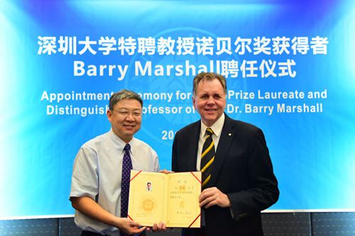 诺贝尔奖获得者Barry Marshall受聘乐竞平台特聘教授