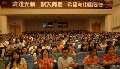 ――南方都市报记者为深大学子讲述汶川灾区见闻 5月29日晚,国际会议厅座无虚席,气氛肃穆,南方都市报记者丰雷、 姜锵、徐文阁、陈以怀在此为深大学子讲述灾区见闻,他们在汶川地震后第一时间进入灾区,亲身见证了这场举世震惊的大灾难。报告会由党委宣传部、社会科学教研部主办,宣传部部长王红主持了会议。会议伊始全场人员为四川灾区遇难人民默哀一分钟。 丰雷首先发言,他告诉大家,他是5月12日下午动身赶赴...