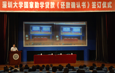 6月11日下午,我校2008届贷款毕业生《还款确认书》签订仪式在国际会议厅隆重举行。深圳平安银行深圳深大支行行长丘红兵,我校副校长李永华,学生处负责人及各学院辅导员、全体获贷毕业生470余人出席了仪式。 我校国家助学贷款申请人数逐年上升,毕业生还款情况良好,截至2008年5月,我校在平安银行贷款的512名毕业生中已有220名还清了国家助学贷款,还清贷款率高达42.9%。学生处副处长黄少玲介绍了我校国家...