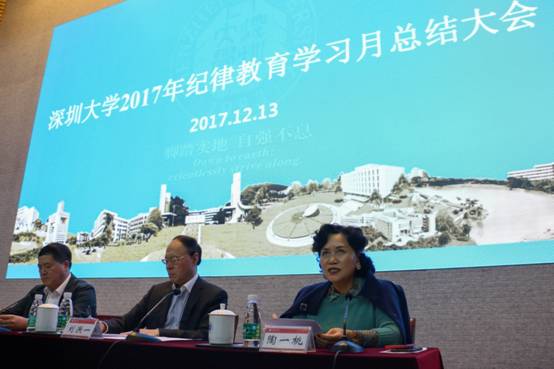 12月13日下午,我校召开2017年纪律教育学习月总结大会。校党委书记刘洪一,党委副书记、纪委书记陶一桃,党委副书记范志刚,副校长王晖、李永华,各基层党委(总支)书记、副书记,各教学、教研、教辅单位领导班子成员,机关各部室正副职负责人,组织、人事、财务、科研、设备、基建、后勤、采购招标等重点岗位相关工作人员,纪委办、监察室、审计室全体工作人员200余人参加了此次会议。大会由范志刚主持。 陶一桃从四个方面对2...