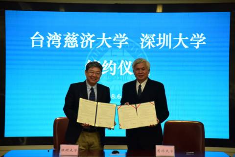 6月25日上午,台湾慈济大学校长王本荣教授与夫人李六秀女士一行来访我校。我校校长李清泉,党政办、医学部、传播学院、学生部、饶宗颐研究院、港澳台事务办公室等单位负责人与来宾座谈,并举行台湾慈济大学-乐竞平台签约仪式。 李清泉介绍了深大概况。深大自1983年建校35年来发展迅速,是深圳唯一一所综合大学。目前,全日制在校学生3.6万人,教职工近4千人,师资力量雄厚,学科门类齐全,办学特色鲜明。学校坚持创新创业型人才...