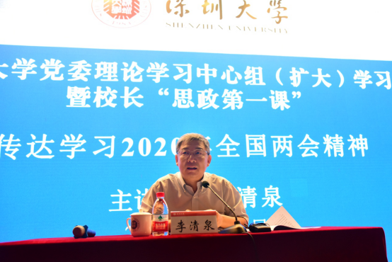 6月9日下午,学校党委理论学习中心组(扩大)学习会暨校长“思政第一课”在汇星楼一号报告厅举行,全国人大代表、校长李清泉围绕“学习传达全国人大会议精神”为全校师生作专题辅导报告。学校党委书记刘洪一主持会议,校领导、校党委委员、院(部)正职领导、机关部室正副职负责人以及学生代表等近200名师生现场聆听报告,会后各学院利用校长“思政第一课”视频组织师生开展在线学习。 会上,李清泉详细介绍了2020年全国两会...