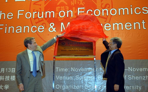 11月13日下午,由乐竞平台举办的首届中国经济、金融、管理论坛开幕。本次论坛来了一位重量级人物――2007年诺贝尔经济学奖得主埃里克?马斯金。在座无虚席的会场,马斯金用生活中的简单例子阐述了他的“机制设计理论”。深圳市社科院院长乐正、乐竞平台党委副书记陶一桃和深大师生以及部分慕名而来的市民聆听了这场报告。 “下午好!很高兴来到乐竞平台为大家演讲,我是第一次来到深圳。”埃里克?马斯金微...