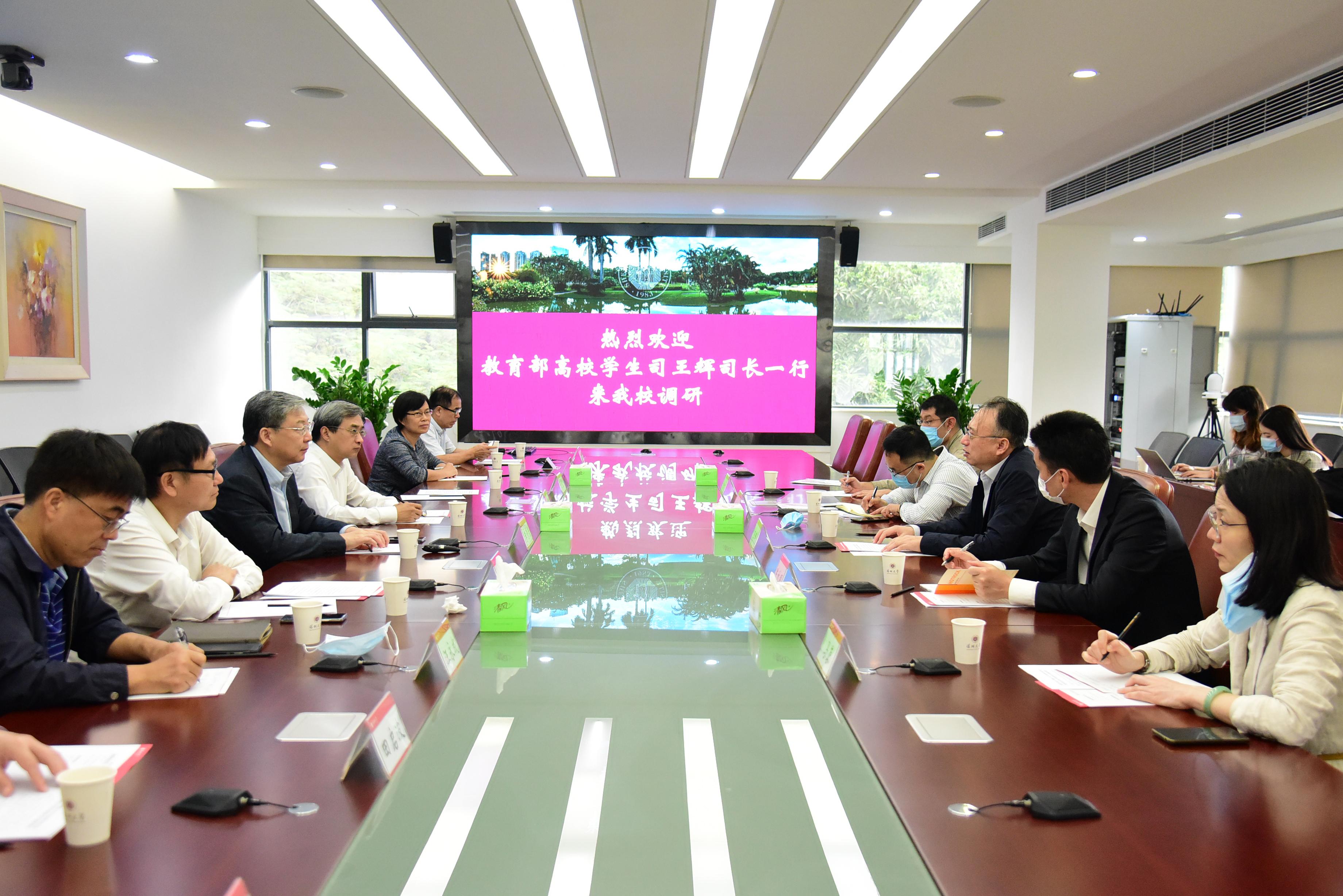 11月18日,教育部高校学生司司长王辉、研究生招生处处长平伟、综合处干部杨阳一行来我校调研交流。深圳市委教育工委书记、党组书记、局长陈秋明,高等教育处副处长马蓉陪同调研。乐竞平台校长李清泉、副校长王晖以及副校长张学记接待了客人一行。双方就乐竞平台高水平大学建设情况在座谈会上展开交流。李