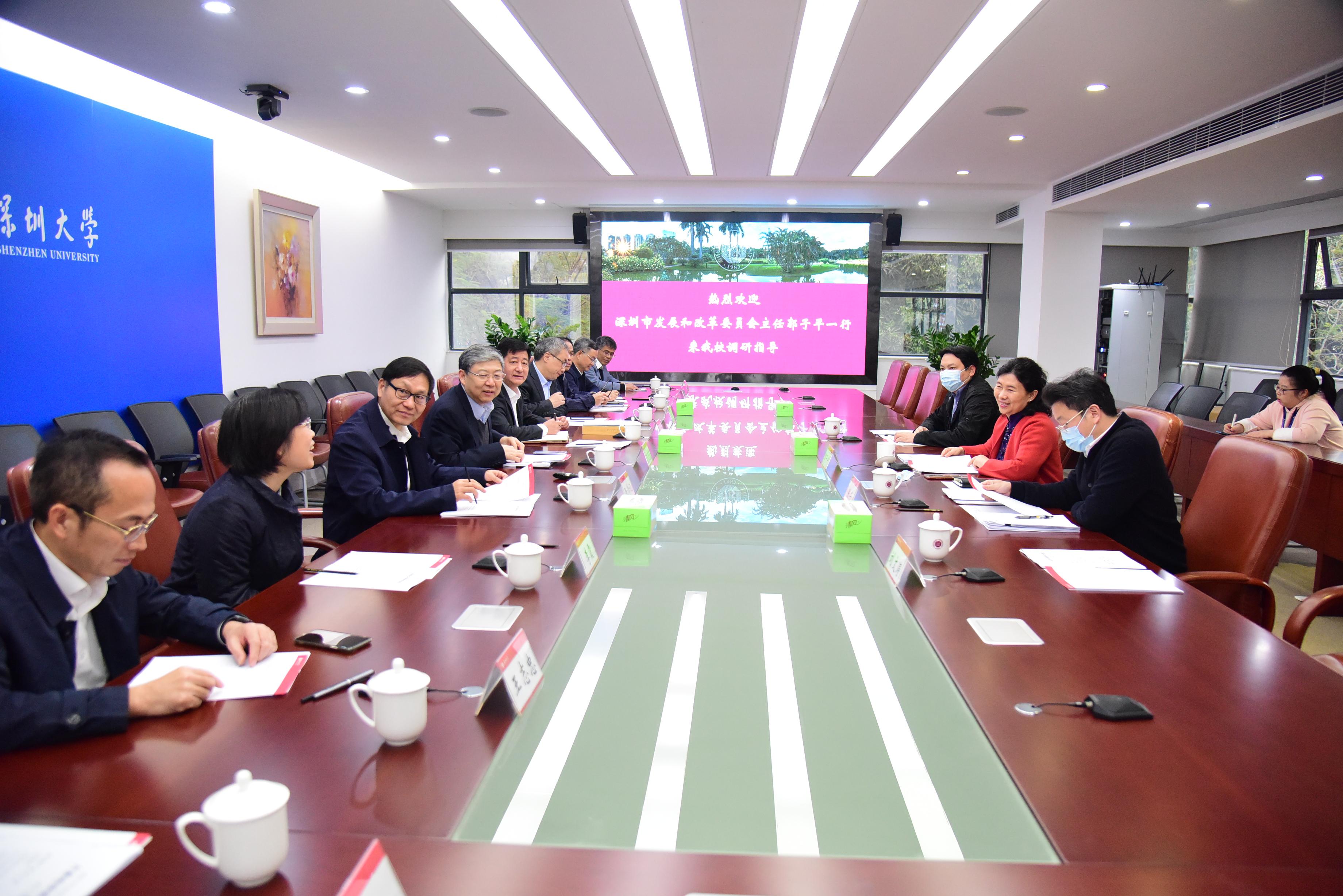 1月7日下午,深圳市发展和改革委员会主任郭子平一行来到我校调研指导工作。我校党委书记、校长李清泉,副校长李永华、张学记接待来宾,双方举行座谈。校党政办公室、一流大学创建办、科学技术部、后勤部、医学部、继续教育学院、乐竞平台总医院、乐竞平台深地科学与绿色能源研究院等部门和学院相关负责人参加座谈。