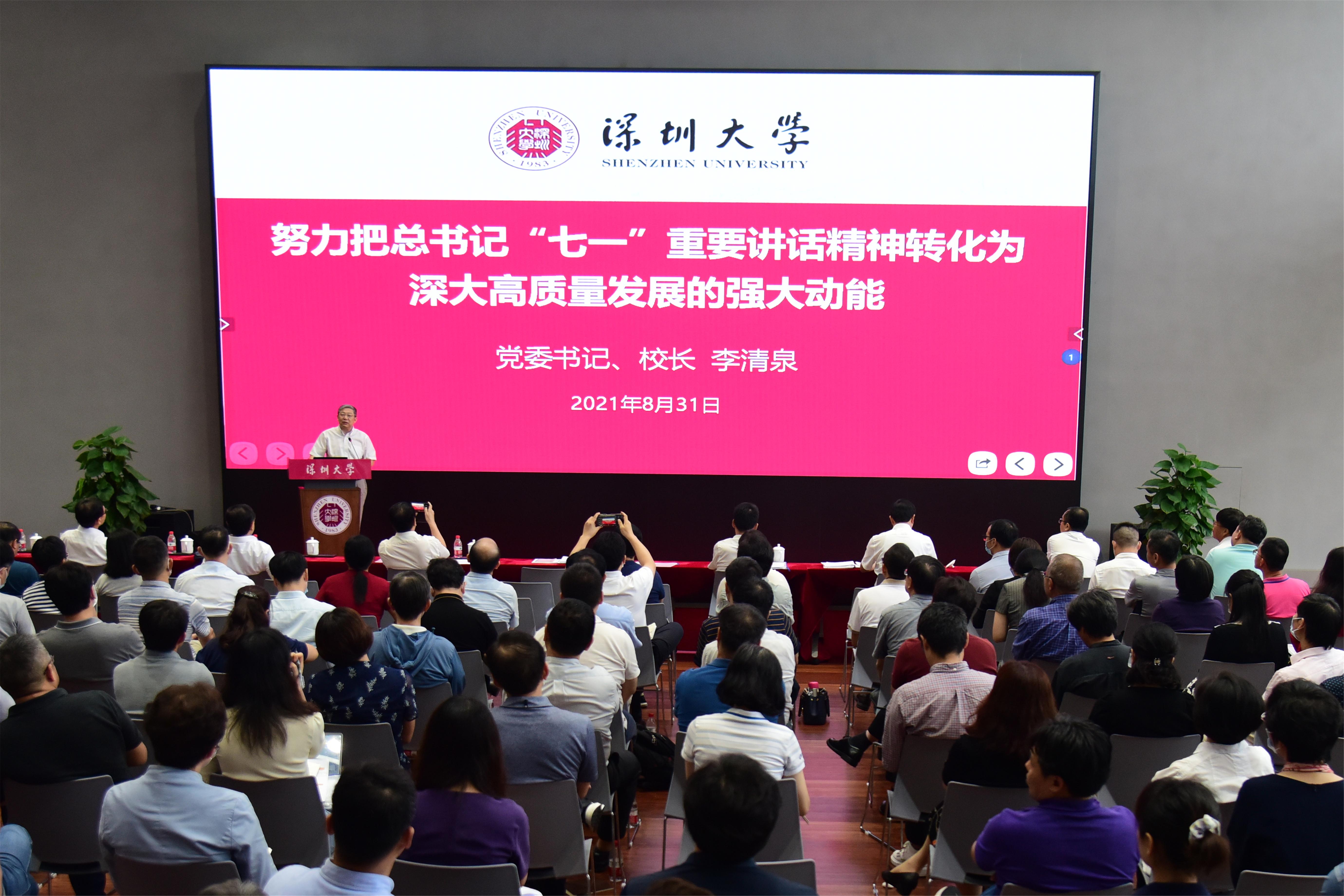 8月30日上午,我校党委举办学习贯彻习近平总书记“七一”重要讲话精神专题研讨班,召开党委理论学习中心组(扩大)学习会。校党委书记、校长李清泉作动员讲话。党委副书记范志刚主持会议。校领导、全体中层干部、独立科研机构负责人、人事工作教授委员会和计财工作教授委员会主任、各学部下属学院正院长参加。