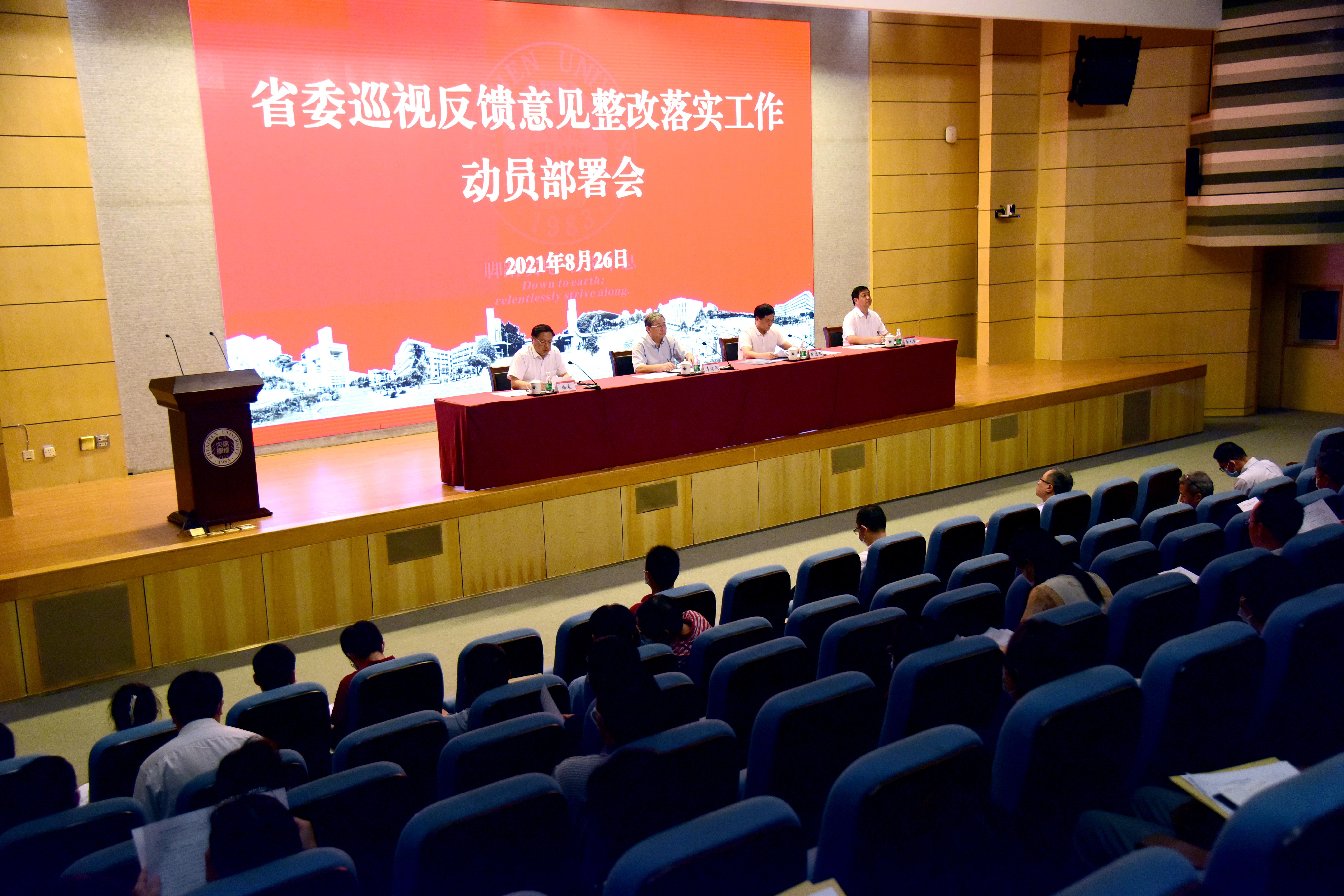 8月26日下午,学校召开省委巡视反馈意见整改落实工作动员部署会,落实省委巡视组有关要求,针对反馈意见切实推进整改工作。学校党委书记、校长李清泉,学校党委副书记范志刚,副校长徐晨、李永华出席会议,学校各基层党委(党总支)书记、学校各部门主要负责人及巡视工作联络组全体人员参加会议。范志刚主持会议。
