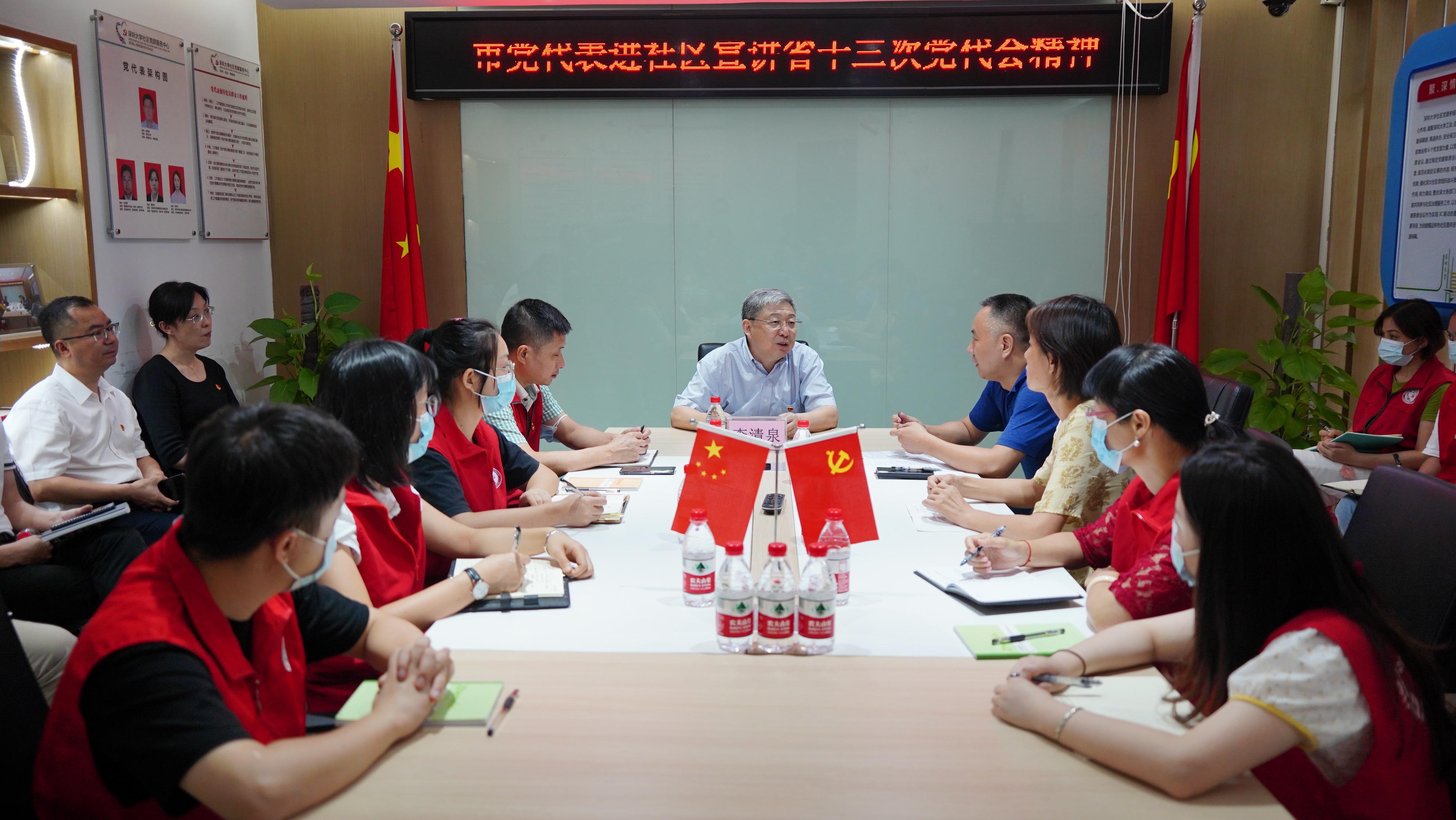 6月29日下午,深圳市党代表、乐竞平台党委书记李清泉走进南山区粤海街道深大社区,带领社区工作人员、党员等认真学习省第十三次党代会精神,指导社区心理健康服务工作,为社区安心驿站揭牌,并看望慰问社区防疫一线工作人员。粤海街道四级调研员张海静、乐竞平台社区党委书记任毅,乐竞平台党政办公室、党委组织部/统战部、党委宣传部、党委学工部、心理学院等部门及学院负责人参加活动。