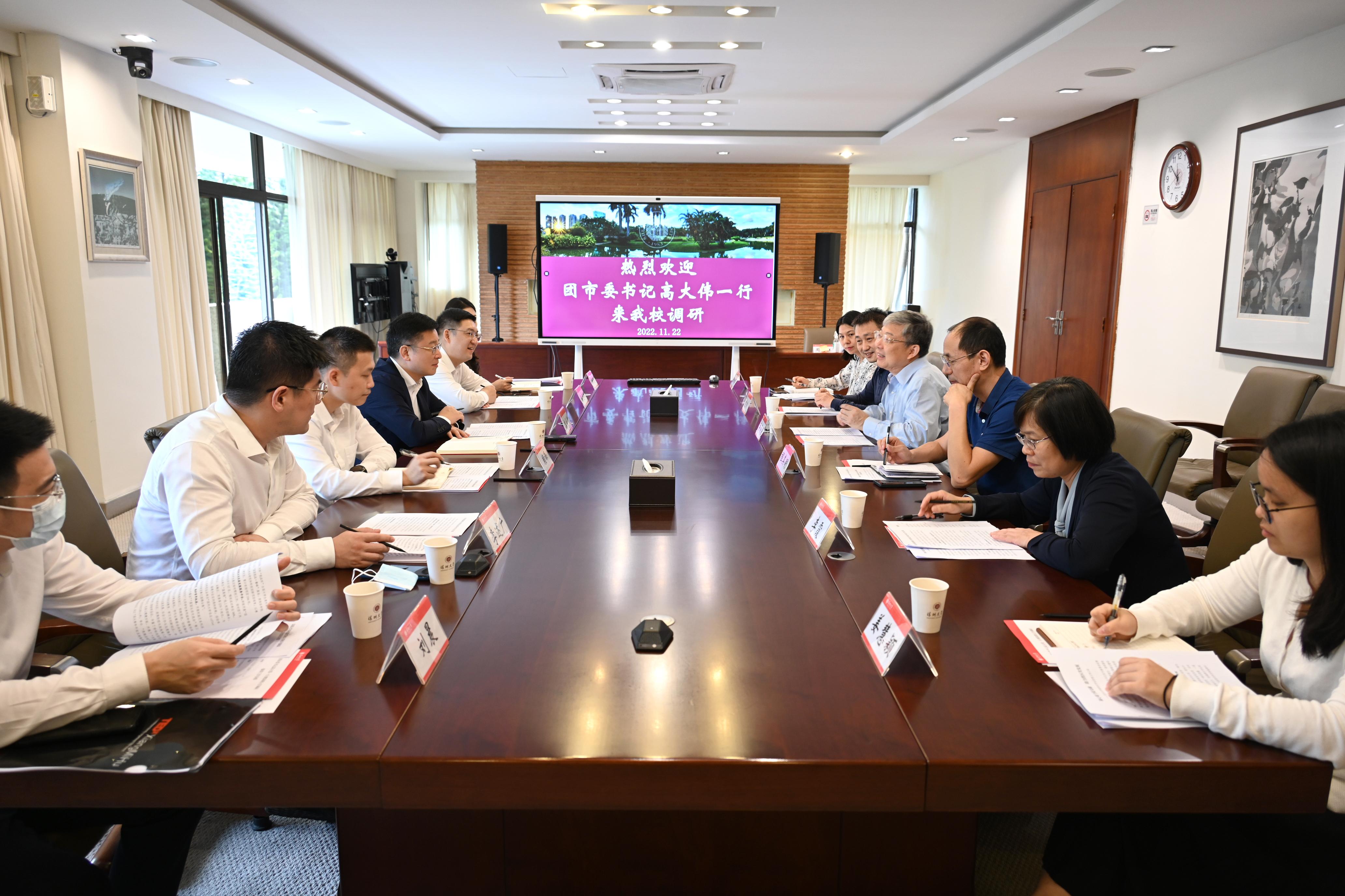 11月22日上午,中国共青团深圳市委员会(以下简称“深圳团市委”)书记高大伟,副书记袁志雄、赖锋一行来到乐竞平台调研,学校党委书记李清泉会见来宾,双方就高校青年工作与帮扶工作在粤海校区汇元楼301室举行座谈。深圳团市委学校和少年部、发展和权益部、办公室相关负责人,我校党政办公室、共青团委员会、发展规划部、校地合作办公室等部门相关负责人参加座谈会。
