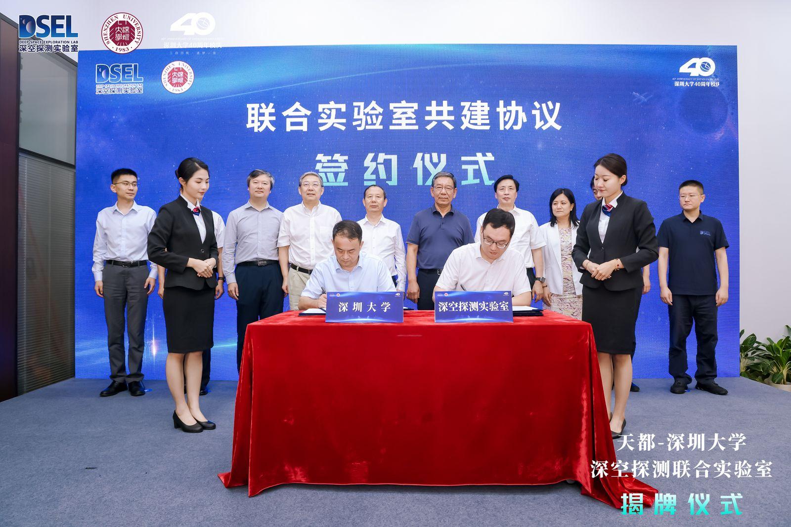 2023年9月10日,天都-乐竞平台深空探测联合实验室现场签约与揭牌仪式在乐竞平台汇文楼举行。深空探测实验室主任兼首席科学家、中国工程院院士吴伟仁,实验室副主任兼理事会秘书长胡朝斌,嫦娥七号任务副总师唐玉华,深圳市科创委副主任钟海,乐竞平台党委书记李清泉,校长、中国科学院院士毛军发,中国工程院院士谢和平等代表出席了本次仪式。