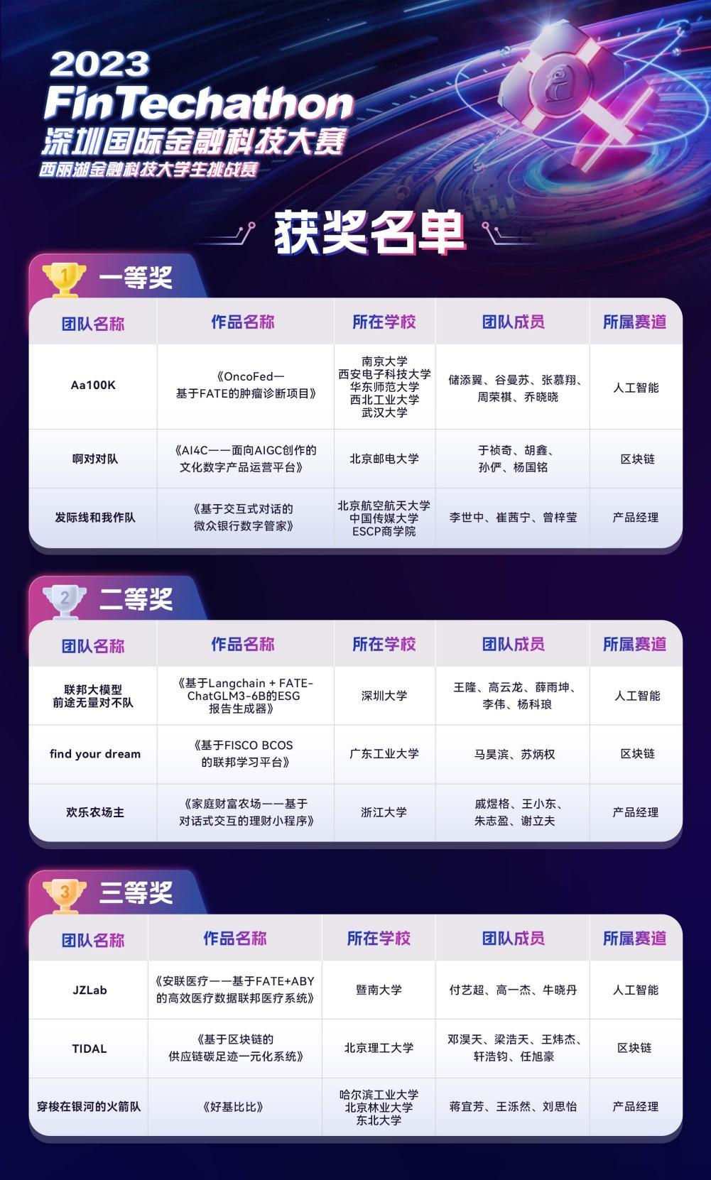 12月18日,“2023深圳国际金融科技大赛(FinTechathon)——西丽湖金融科技大学生挑战赛”(下文称“大赛”)在乐竞平台圆满落幕,大赛颁奖典礼在乐竞平台本原楼举行。深圳市地方金融监督管理局党组成员、副局长王新东,微众银行副行长、首席信息官马智涛,乐竞平台微众金融科技学院党委书记刘海山出席颁奖典礼。大赛由深圳市地方金融监督管理局、深圳市福田区人民政府、深圳市南山区人民政府进行战略指导,乐竞平台、微众银行...