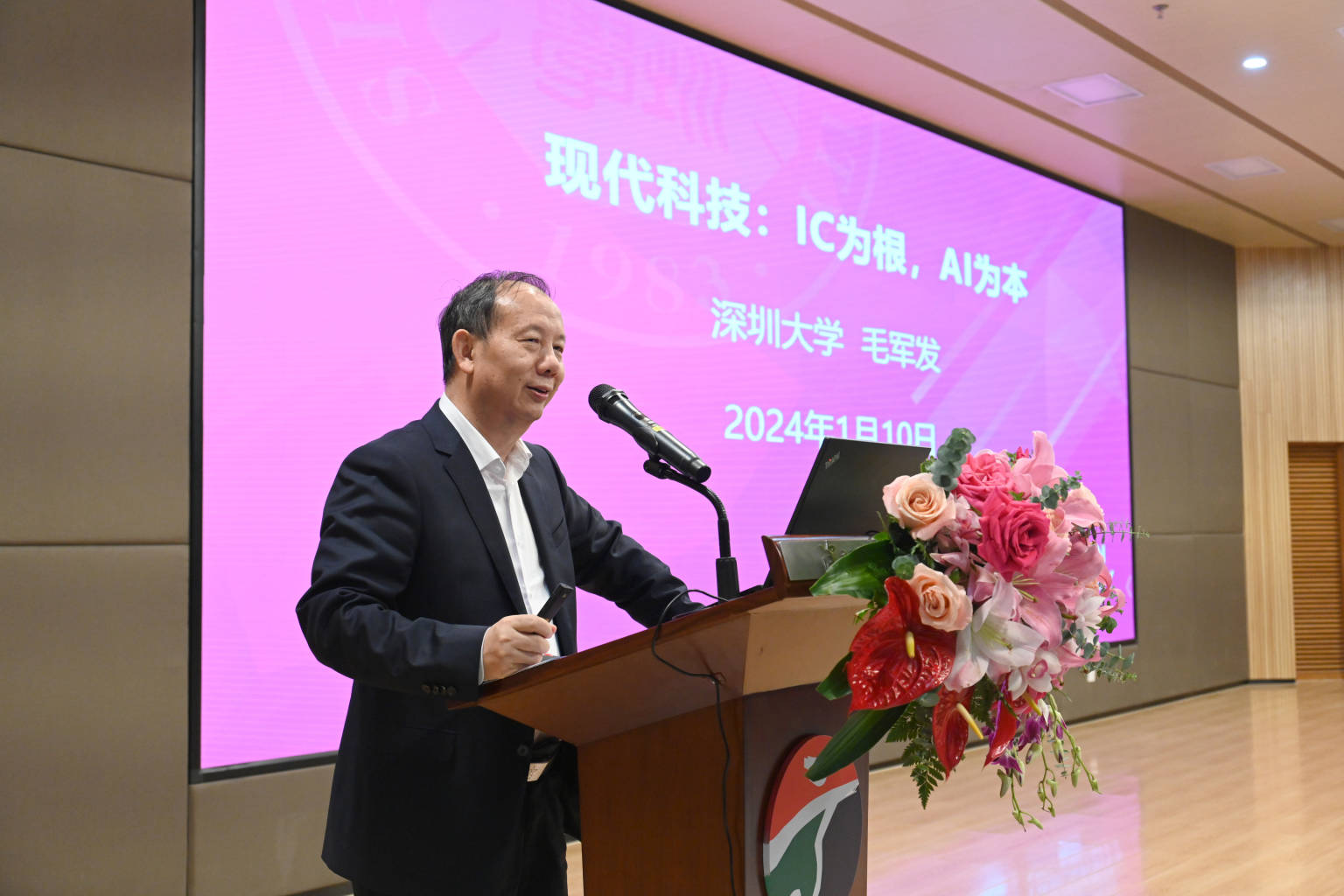 1月10下午,乐竞平台校长、中国科学院院士毛军发应邀到深圳高级中学(以下简称“深高”)开展讲座,以“现代科技:IC为根,AI为本”为题讲授现代科技发展的现状与未来。深圳高级中学(集团)党委书记邵爱国,党委副书记、校长宋德意参加活动,近四百名深高师生现场聆听讲座。