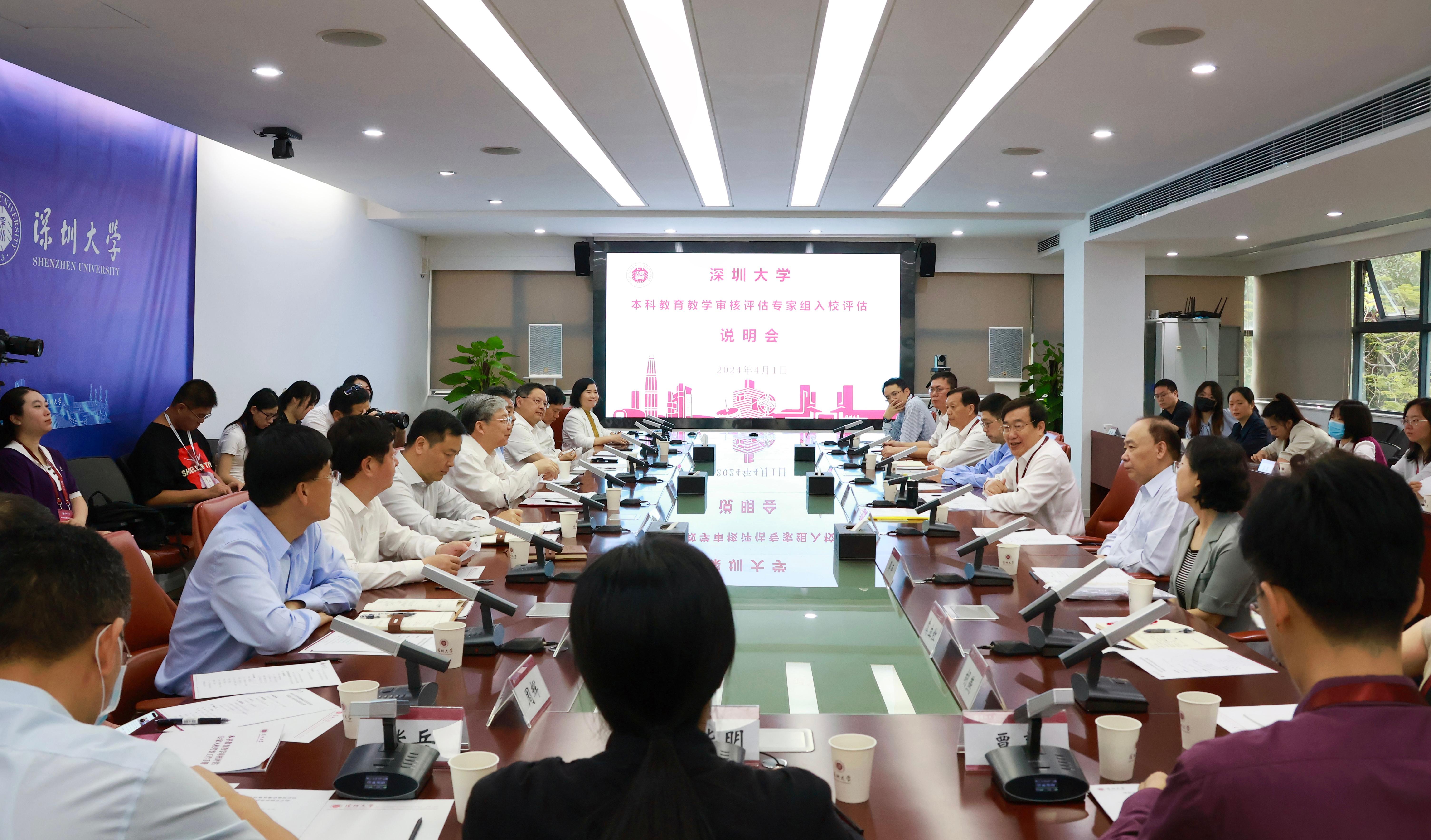 2024年4月1日,乐竞平台新一轮本科教育教学审核评估专家组入校评估说明会在粤海校区汇元楼201会议室召开。由复旦大学原校长、中国科学院院士许宁生担任组长的入校考察专家组一行17人,从即日起对乐竞平台开展本科教育教学审核评估线下评估工作。广东省教育厅高教处副处长吴华明及相关同志,乐竞平台校领导及主要职能部门负责人出席会议。乐竞平台党委书记、中国工程院院士李清泉作表态发言。专家组成员、复旦大学原副校长徐雷主持会议。