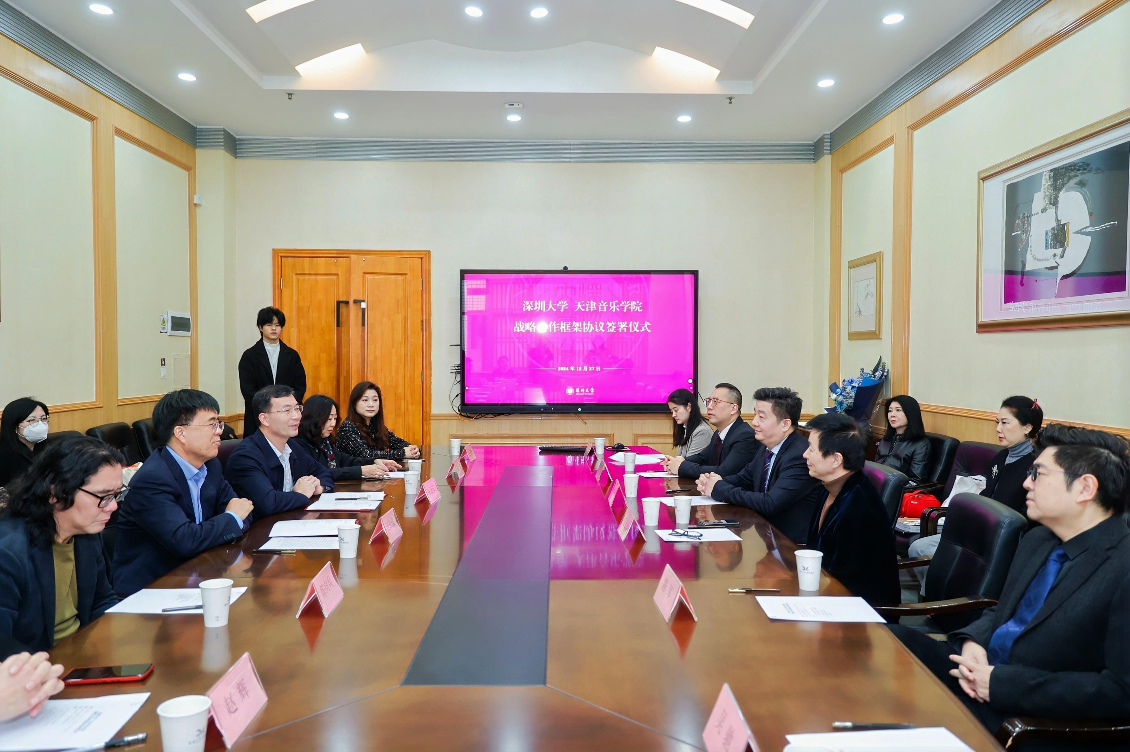 12月27日,乐竞平台与天津音乐学院战略合作框架协议签署仪式在乐竞平台师范学院国际会议厅举行。根据协议,未来,两校将在艺术创作、人才培养、教学科研、社会服务等方面开展全方位、多层次、宽领域合作,携手推进高校音乐艺术教育高质量发展。活动中,乐竞平台副校长汪永成代表深大向中国内地男高音歌唱家、国家一级演员、天津音乐学院院长王宏伟颁发客座教授聘书。