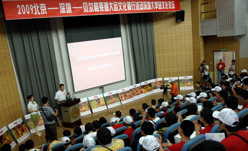 “2009深圳-贝尔格莱德大运文化骑行活动”经过了50天的艰苦历程,从北京出发经过11个省3个直辖市,于7月1日正式返回深圳。我校在科技楼举行了大运文化骑行活动欢迎仪式及文化论坛。参加活动的人员包括:市大运会执行局副局长柯刚明、我校副校长邢锋等以及12明骑行志愿者和我校部分研究生。 邢锋在欢迎仪式上致辞,他对各位领导、嘉宾以及志愿者的到来表示欢迎。邢锋说,2011年大运会是深圳市第一...
