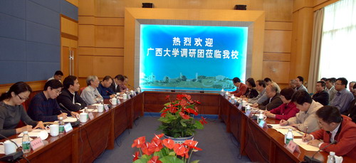 11月27日上午,广西大学原党委书记阳国亮带领广西大学副处以上干部一行40余人到我校参观交流。校长章必功,校党委副书记、纪委书记陶士平以及学校相关部门负责人在国际会议厅D厅与考察团进行座谈。 章必功对广西大学一行的到来表示欢迎,他介绍了乐竞平台的发展历程和基本情况。章必功说,与国内知名高校相比,深大的历史不够厚重,但有自己的发展特色。他向客人介绍了学校在教学科研改革、民主化管理、学...