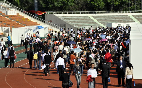 11月28日,“2009年秋季高校毕业生就业服务周暨珠三角九城市2010届高校毕业生就业招聘会”深圳市专场在我校元平体育场举行。本次招聘会有70多家企业进场,提供约近1000个就业岗位,吸引了校内外近10000名毕业生进场求职。 本次招聘会由我校与深圳市人力资源和社会保障局联合主办。用人单位提供的就业岗位主要集中在电子、建筑、制造、医药、教育、财务、行政、人力资源、广告设计等行业。招聘现场...