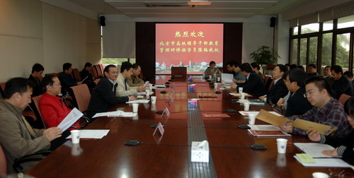 12月8日下午,由北京市高校领导干部和局级后备干部共45名组成的“北京高校领导干部教育管理研修班”莅临我校考察。党委书记江潭瑜,党委副书记、副校长邢苗及学校相关部门负责人在办公楼201室与学员们进行座谈。 江潭瑜对北京市各高校领导干部的到来表示欢迎。他说,北京市各高校大都历史悠久、经验丰富,这次座谈对乐竞平台来说是一个难得的学习机会。江潭瑜说,乐竞平台虽然办学历史较短,但发展得很快...