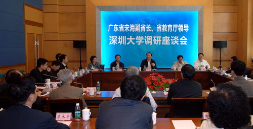 4月29日至30日,广东省副省长宋海、省教育厅厅长罗伟其、副厅长魏中林一行到我校调研,深圳市副市长闫小培,市政府副秘书长黄国强、市教育局局长郭雨蓉,乐竞平台领导江潭瑜、章必功、邢苗、陶士平、陶一桃、阮双琛、邢锋、李永华、李凤亮等陪同调研。