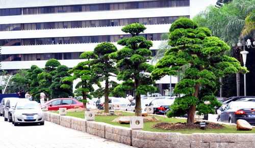 端午时节,嘉木树庭。6月15日,学校正门至时光广场中间绿化带上,八棵新植的罗汉松傲然挺立,婆娑葱郁,或雄浑苍劲,或清雅挺拔。 八棵罗汉松分别由上海巨人网络科技有限公司、江苏红豆集团有限公司、正中置业集团有限公司、深圳市富通房地产集团有限公司、深圳市海岸房地产开发有限公司、北京永一格展览展示有限公司、深圳市益田集团股份有限公司、深圳市创益科技发展有限公司等校友企业捐植。腾讯公司所捐黑松...