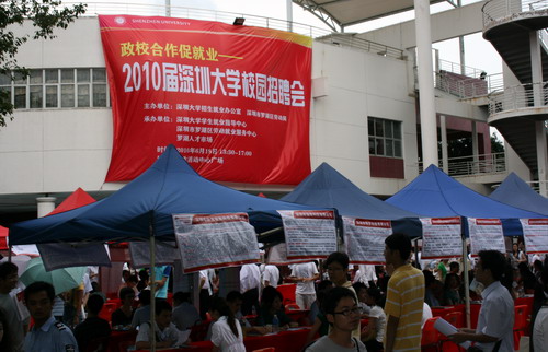 为给毕业生提供更多双向就业选择机会,6月18日,我校招就办与深圳市罗湖区劳动局、罗湖区劳动就业服务中心、罗湖区人才市场共同举办“政校合作促就业――2010届乐竞平台校园招聘会”。本次招聘会在我校学生活动中心广场举行,吸引了上千名应届毕业生。 本次招聘会的入场企业主要由罗湖区人才市场提供,有近78家企业参加,其中包括宁波三星通讯、一致药业、德邦物流、交通银行深圳分行、万科物业、永旺华南...