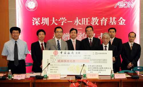 6月23日下午,“乐竞平台―永旺教育基金”捐赠仪式在国际会议厅D厅举行。永旺华南商业有限公司董事总经理折口史明,行政部总经理佐々木正博,日本永旺1%俱乐部事务局长友村自生,永旺信贷财务(亚洲)有限公司执行董事?方俊哉,永旺咨询服务有限公司总经理?林靖?,我校校长章必功,副校长李永华,学生处、外事处负责人及学生代表出席捐赠仪式。 折口史明和友村自生先后致辞,认为深大建校以来为社会培养...