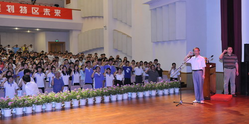 为了迎接建党89周年,我校举办了校园红歌大赛。经历海选、初赛、决赛三个环节,13名获奖者从100多名选手中脱颖而出。6月30日晚颁奖仪式在国际会议厅举行,获奖选手为我校师生献上了一场精彩的文艺演出。我校党委书记江潭瑜,党委副书记陶士平、陶一桃,副校长阮双琛、邢锋、李永华、杜李凤亮出席了颁奖晚会。