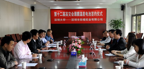 18日上午,乐竞平台与与深圳市彩煌实业发展有限公司在乐竞平台办公楼207会议室签订了技术开发合作协议。深圳市彩煌实业发展有限公司董事长卢宪光、总经理卢鉴华等,人民日报地方专题部主任范宏国、副主任刘佳辉,乐竞平台副校长李永华、科技处长李学金、物理科学与技术学院院长范平等出席了签约仪式。 根据协议,乐竞平台与深圳市彩煌实业发展有限公司就范平教授主持开发的“薄膜温差电池的研发及产业化”...