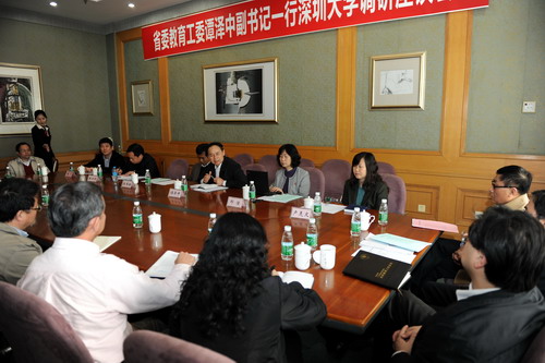 2月24日,广东省委教育工委副书记、省教育厅党组副书记谭泽中,省教育厅人事处处长那佳、副处长林日团,干部处处长朱伟新、师资管理处处长卢羡文一行到我校调研人事制度改革情况。校领导章必功、陶士平、陶一桃、阮双琛、邢锋、李永华出席在国际会议厅D厅举行的调研汇报会。当天下午,调研团还与我校教职员工代表进行了座谈交流。