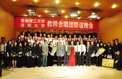 4月15日晚,香港理工大学职员合唱团一行40人在香港理工大学阮伟华副校长、职员会所主席苏鸿辉先生带领下来访我校,与我校教师合唱团在师范学院音乐厅举行联谊晚会。我校党委副书记、工会主席陶士平,校工会、国际拓展部相关负责人出席晚会。 联谊晚会在理工大学职员合唱团演唱的百老汇最长寿音乐剧《Phantom of the Opera》中开始,随后深大教师合唱团为现场观众带来了一首柔肠百转,高亢奔放、粗犷刚健的西...