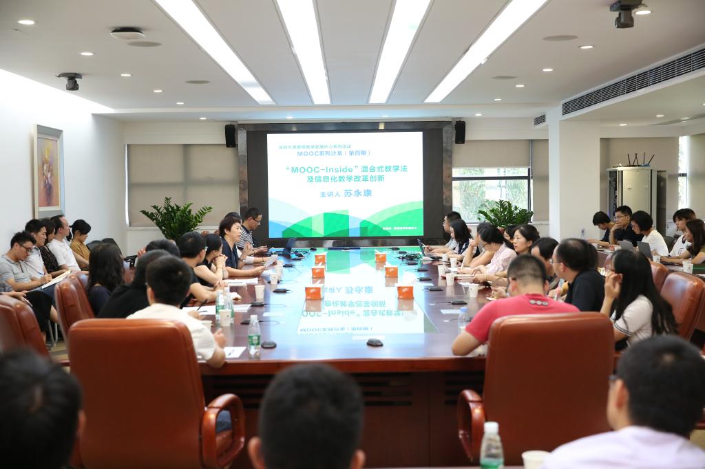 2017年9月26日下午,由教务部教师教学发展中心主办的“MOOC系列沙龙”活动(第四期)在办公楼201会议室举行。教师发展中心主任孙忠梅及学校MOOC建设课程的项目负责人、各学院青年教师共110余人参加了本次活动。本次沙龙特别邀请上海交通大学慕课研究院“好大学在线”平台运行主管、中国高校计算机教育MOOC联盟上海培训中心主任苏永康为主讲嘉宾。