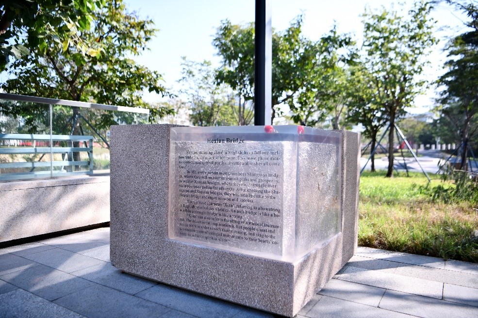 和弦桥:和弦,音色饱满,圆润。犹如满月,月相团圆。寓意梦想开花、愿景如意。上弦、下弦、和弦,三桥并架,象征跨顺境,越逆境,达胜境。又,弦,弓弦。喻及桥梁:桥拱如弓,桥直如弦。又,弦,琴弦。关乎教育:诵读探义,弦歌和心。