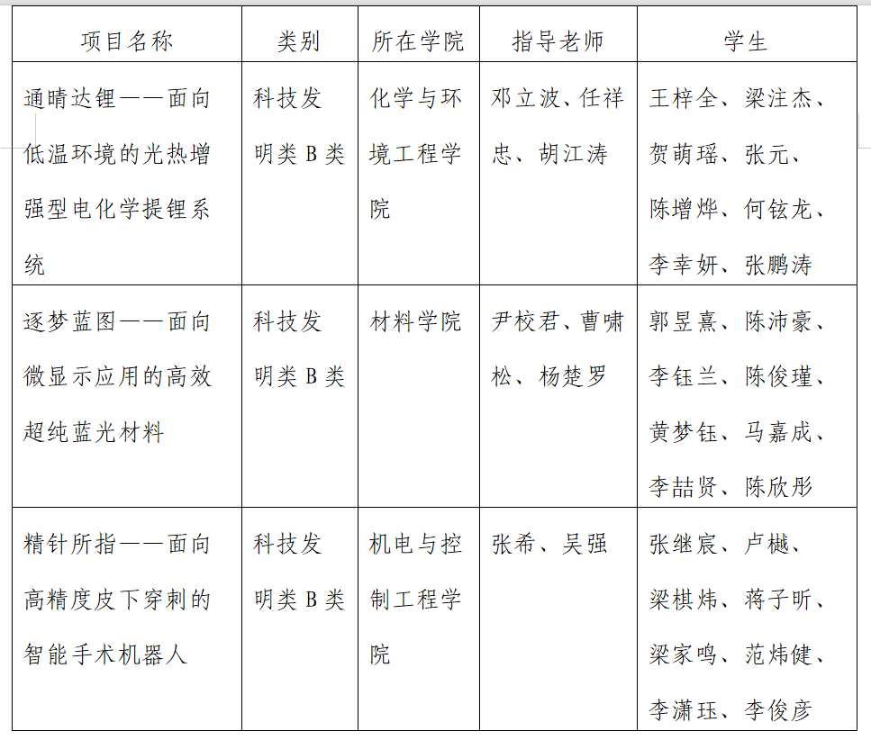 按照团中央《关于开展第十九届“挑战杯”全国大学生课外学术科技作品竞赛的工作提示》和团省委相关工作要求,结合项目省赛成绩,经综合研究,现将我校拟推荐参加第十九届“挑战杯”全国大学生课外学术科技作品竞赛作品进行公示(见下表)。