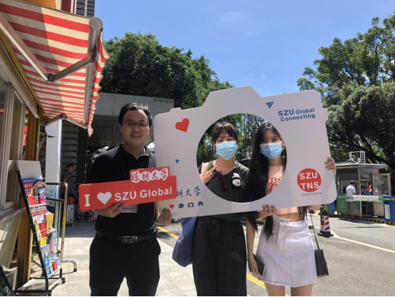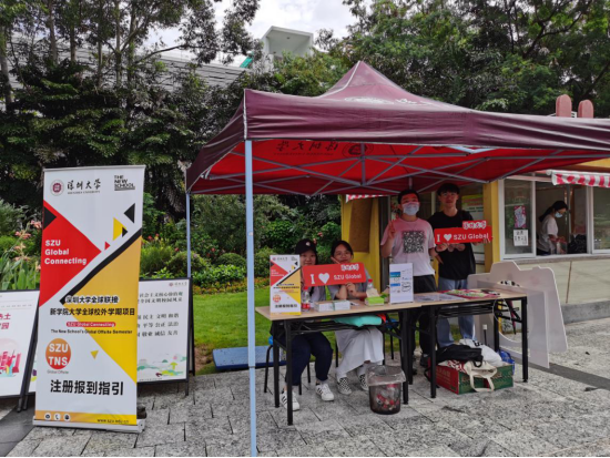 9月16日上午8时许,新学院大学全球校外学期项目的大一同学们,携带着我校录取接收函,陆续抵达第一站--我校粤海校区正门(立德门),在国际交流与合作部老师和国际交流协会志愿者的帮助下,顺利领取校园卡并进入学校。国际交流与合作部在校内沿途摆放了靓丽的指示牌,保证帕森斯项目的同学们能够顺利找到位置。相关志愿者已经等候在显眼的欢迎立牌前,帮助同学们完成信息核验和行李搬运,一起前往位于文山湖畔的留学生楼一楼的阅览室报到。